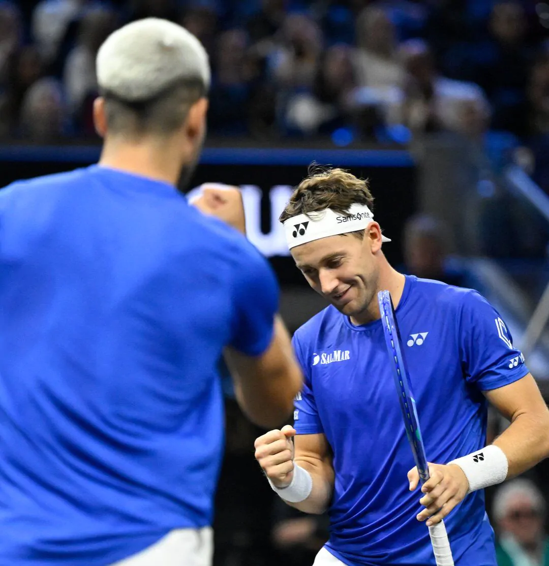 O Time Europa começou bem o domingo e diminuiu a vantagem do Time Mundo na Laver Cup. No primeiro jogo do dia, o espanhol Carlos Alcaraz e o norueguês Casper Ruud venceram o confronto de duplas contra os americanos Alex Michelsen e Reilly Opelka por 2 sets a 0, com parciais de 7-6 (7-4) e 6-1, em uma hora e 35 minutos de partida.