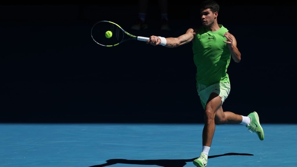 O cabeça de chave número 1 enfrentará o cabeça de chave número 32, Corentin Moutet, na próxima rodada. Alcaraz está a duas vitórias de igualar seu melhor resultado no Aberto da Austrália: quartas de final em cada uma das últimas duas edições. O tenista de 22 anos busca se tornar o mais jovem da história a completar o Grand Slam de carreira em simples e o mais jovem da Era Aberta a conquistar sete títulos de Grand Slam em simples.