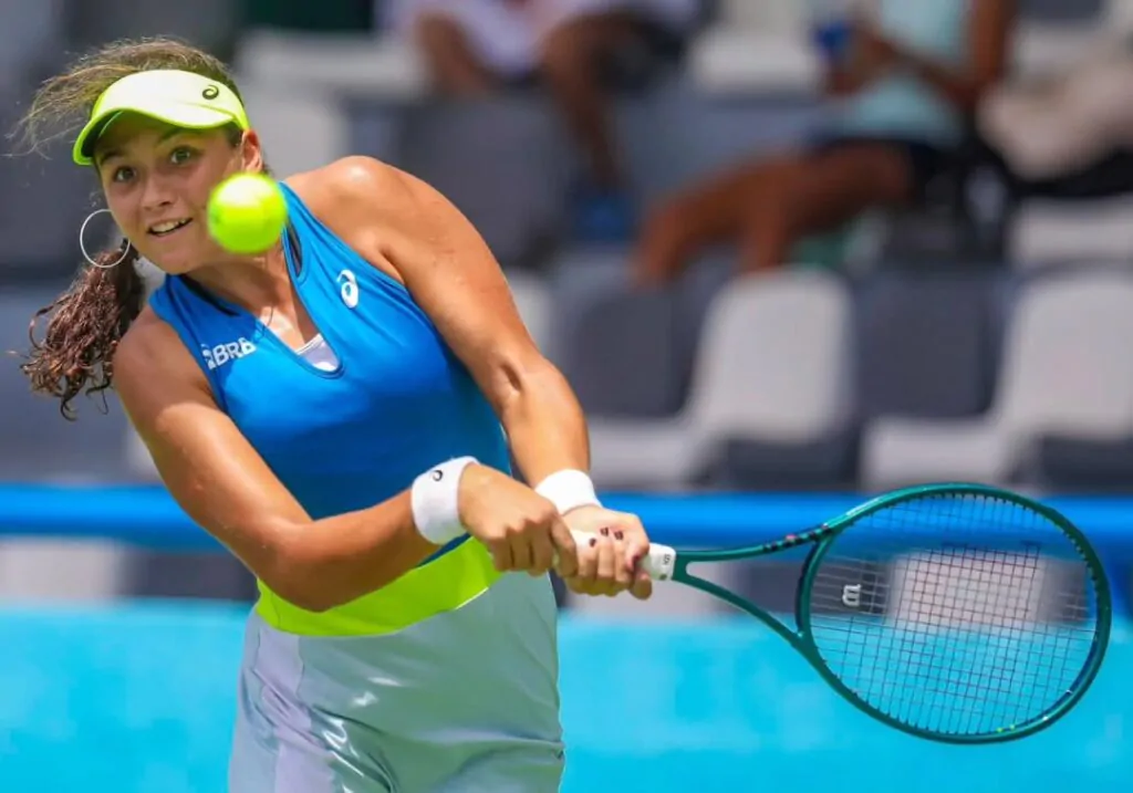 Outra brasileira a entrar em quadra na chave principal nesta segunda não teve a mesma sorte. Rebeca Pereira perdeu para a americana Lilian Poling por 2 sets a 1, com parciais de 4-6, 6-1 e 6-3, em duas horas e 36 minutos.