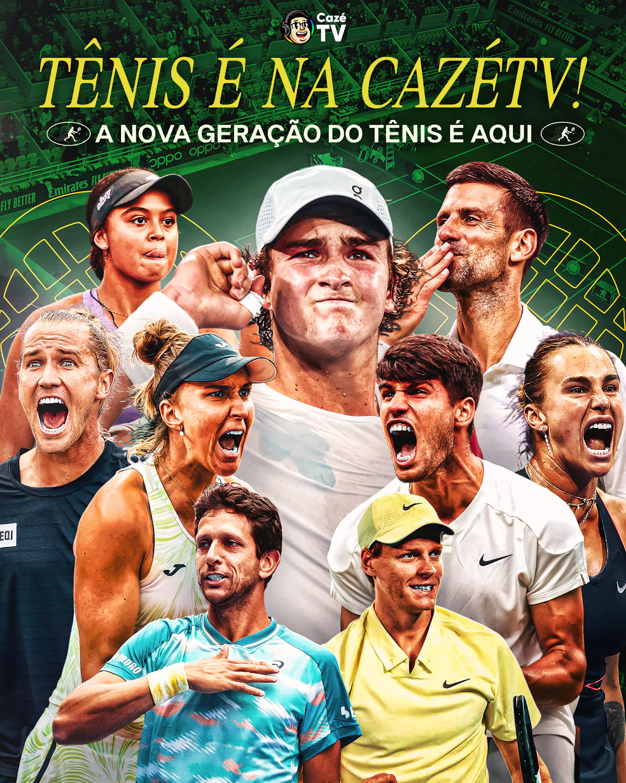 O projeto também prevê a atuação de um squad de criadores, especialistas e atletas, além de conteúdos originais pensados exclusivamente para o digital, como podcasts, quadros temáticos, desafios e entrevistas, garantindo presença constante do tênis na programação e nas redes da CazéTV.