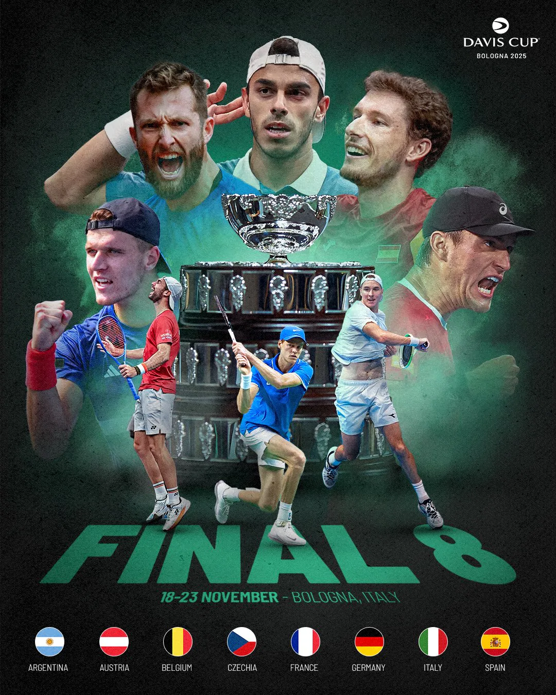 Foram definidos neste final de semana os oito finalistas da Copa Davis de 2025. Atual campeã e país sede do torneio, a Itália já estava garantida na fase final, que acontecerá em Bolonho entre os dias 18 e 23 de novembro.