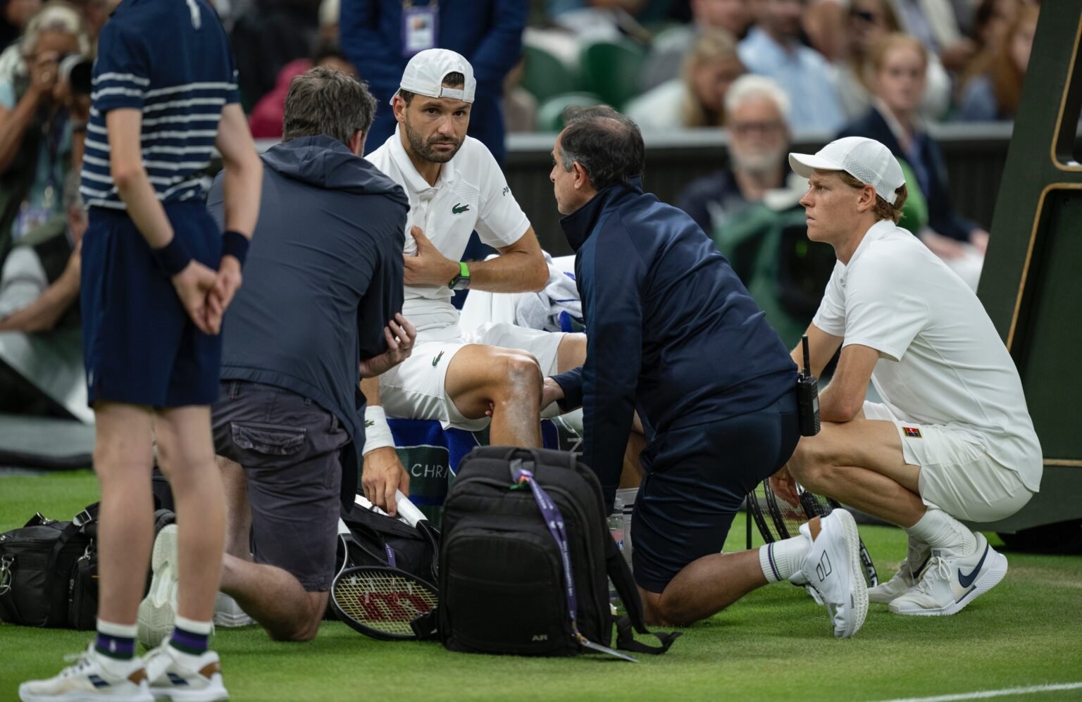 Dimitrov abre 2 sets a 0 sobre Sinner, mas sofre lesão e abandona jogo em Wimbledon