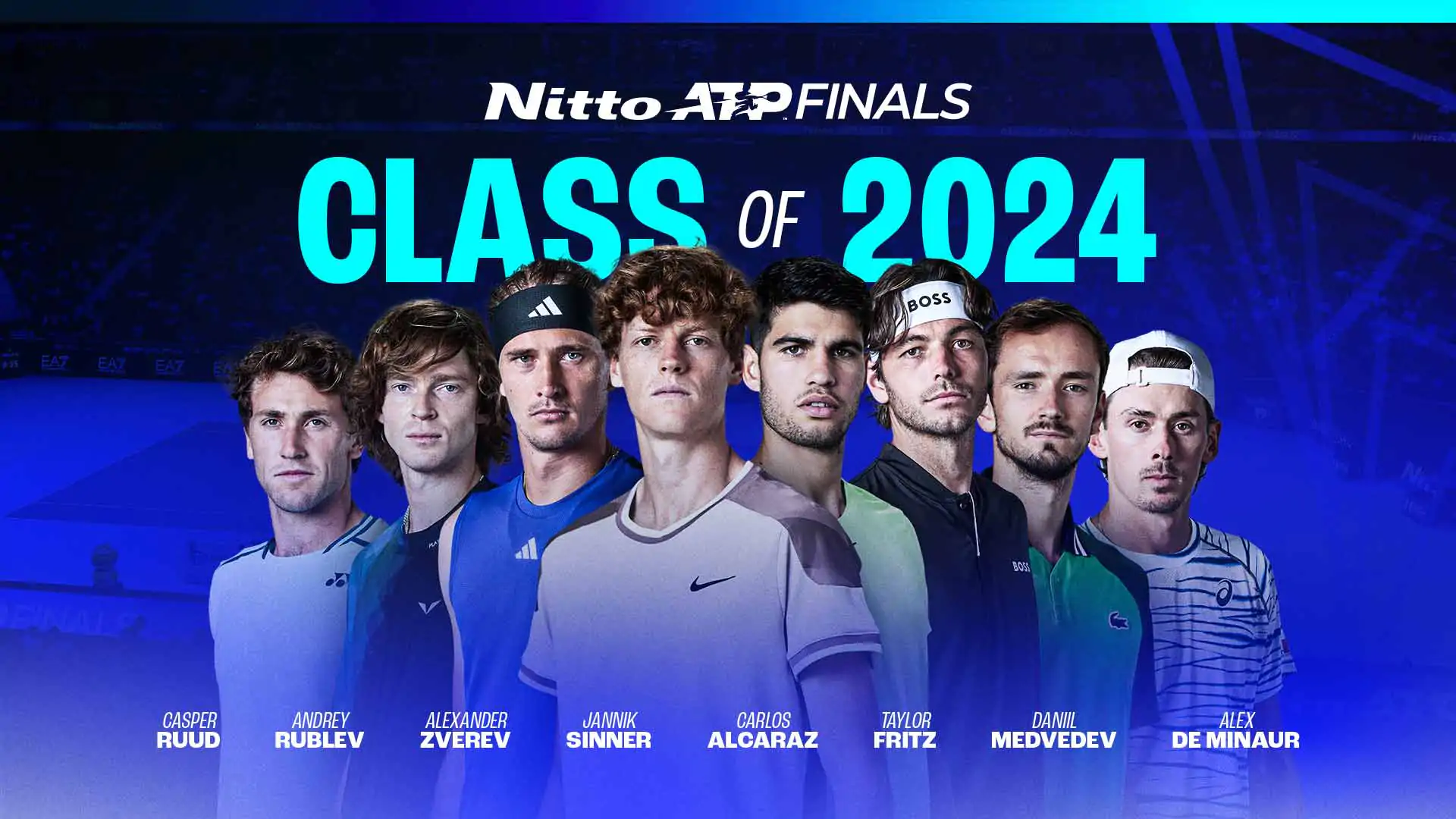 Com a desistência de Novak Djokovic, Casper Ruud, Alex de Minaur e Andrey Rublev conquistaram as três últimas vagas na disputa de simples. Eles se juntarão a Jannik Sinner, Alexander Zverev, Carlos Alcaraz, Daniil Medvedev e Taylor Fritz.