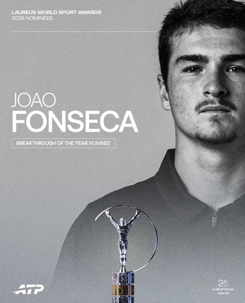 O tenista João Fonseca foi indicado ao tradicional Prêmio Laureus na categoria revelação do ano. O brasileiro concorre ao prêmio com o atacante Désiré Doué, do PSG, com o armador Shai Gilgeous-Alexander, do Oklahoma City Thunder, da NBA, com o piloto de Fórmula 1, Lando Norris, da McLaren, com a nadadora chinesa Yu Zidi, de apenas 12 anos, e com o britânico Luke Littler, do lançamento de dardos.