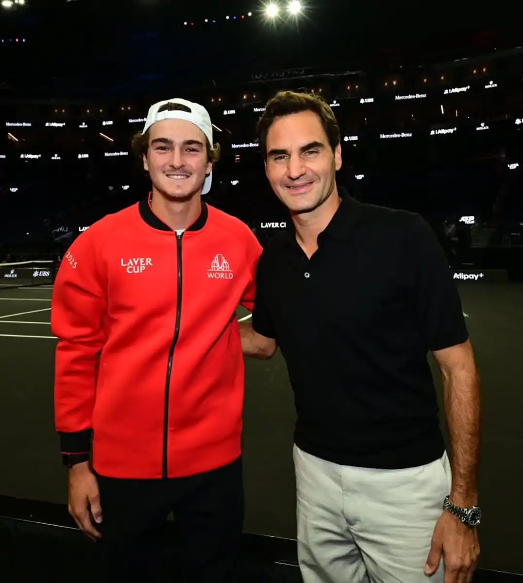 O brasileiro registrou o encontro nas redes sociais. João Fonseca nunca escondeu a admiração pelo suíço, para muitos o maior jogador de todos os tempos e idealizador da Laver Cup.