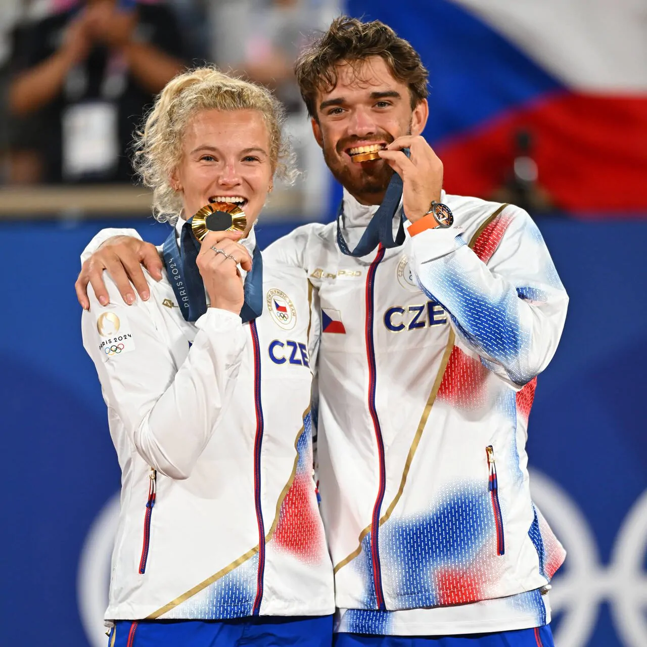 A primeira medalha de ouro no tênis nos Jogos Olímpicos de Paris é da República Tcheca. Na tarde desta sexta-feira, Katerina Siniakova e Tomas Machac venceram os chineses Zhizhen Zhang e Xinyu Wang por 2 sets a 1, com parciais de 6-2, 5-7 e 10-8, em 1h17min de partida, e subiram no posto mais alto do pódio.