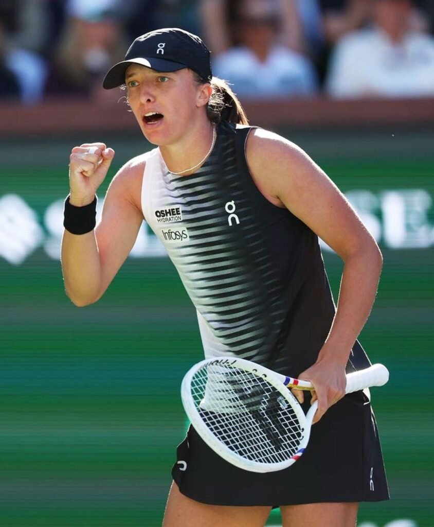 Bicampeã do torneio, Iga Swiatek estreou com vitória no WTA 1000 de Indian Wells, nos Estados Unidos. Na noite deste sábado, a polonensa venceu a americana Kayla Day por 2 sets a 0, com parciais de 6-0 e 7-6 (7-2) e conquistou o 33ª vitória consecutiva em estreias em torneios WTA 1000.